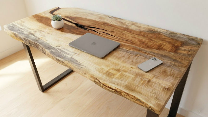 楡/ニレ 1200x480x30mm 天然木パソコンテーブル・電動式昇降デスク天板/DIY木材・1枚板・無垢板/下仕上げ済み
